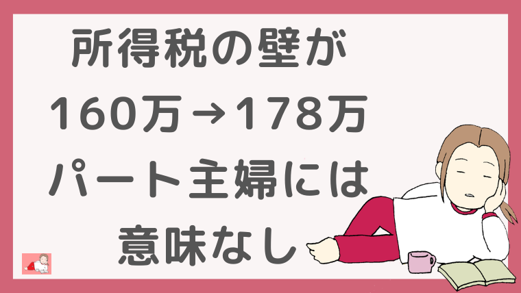 会社では給与や年末調整を担当し、社労士試験にも合格した(社労士登録は未定)出不精ママが、所得税の壁が160万→178万になってもパート主婦にとっては意味のない理由の世界一わかりやすい説明にトライします!